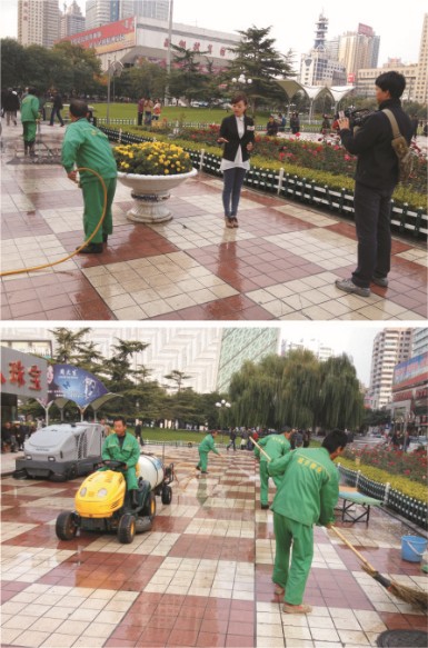 目前全市環(huán)境衛(wèi)生狀況整體良好,相對第一次,這次“全民洗城”行動更規(guī)范化,范圍更擴大化、全面化,不僅用灑水車噴灑車行道,還用高壓水槍沖洗人行道,用拖布仔細拖洗廣場地面,確保了市容環(huán)境衛(wèi)生干凈、整潔。