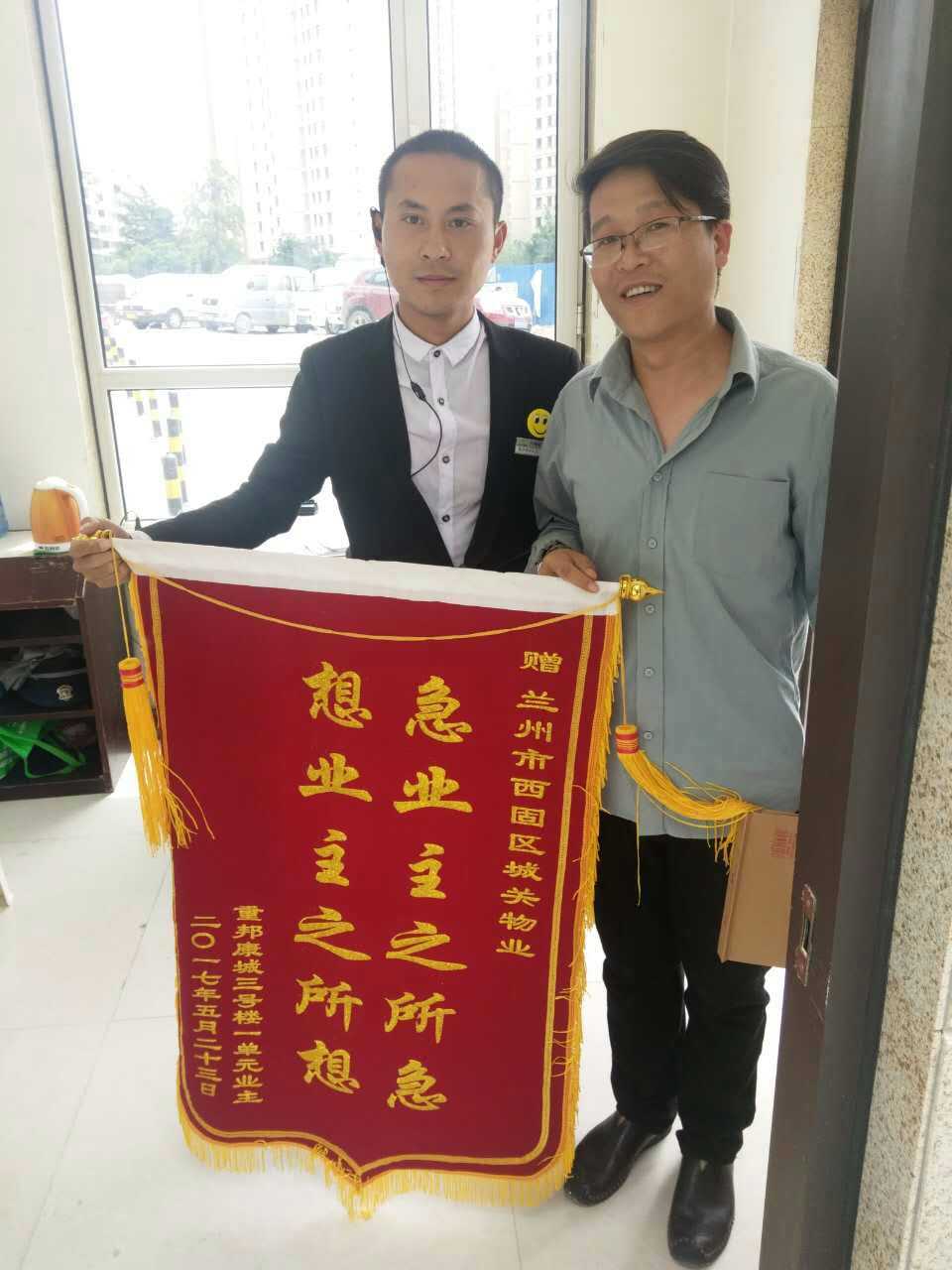 524上午11點左右,重邦康城小區(qū)一戶業(yè)主將一副題為“急業(yè)主之所急,想業(yè)主之所想”的錦旗送到了物業(yè)辦公室,感謝物業(yè)人員在干好本質(zhì)工作的同時,積極熱心的幫忙尋找自家的小狗。該業(yè)主強調(diào),自從入住這個小區(qū)以來,每一天都過的很舒心,城關(guān)物業(yè)工作人員專業(yè)素質(zhì)強,服務(wù)熱情周到。在得知小狗丟了的情況下,積極主動的安排人員幫忙尋找,并最終找到小狗。感謝城關(guān)物業(yè)提供如此優(yōu)質(zhì)、貼心、專業(yè)的服務(wù)。田曉晨經(jīng)理說道,業(yè)主的事不論大小,只要有需要,我們定會全力以赴。