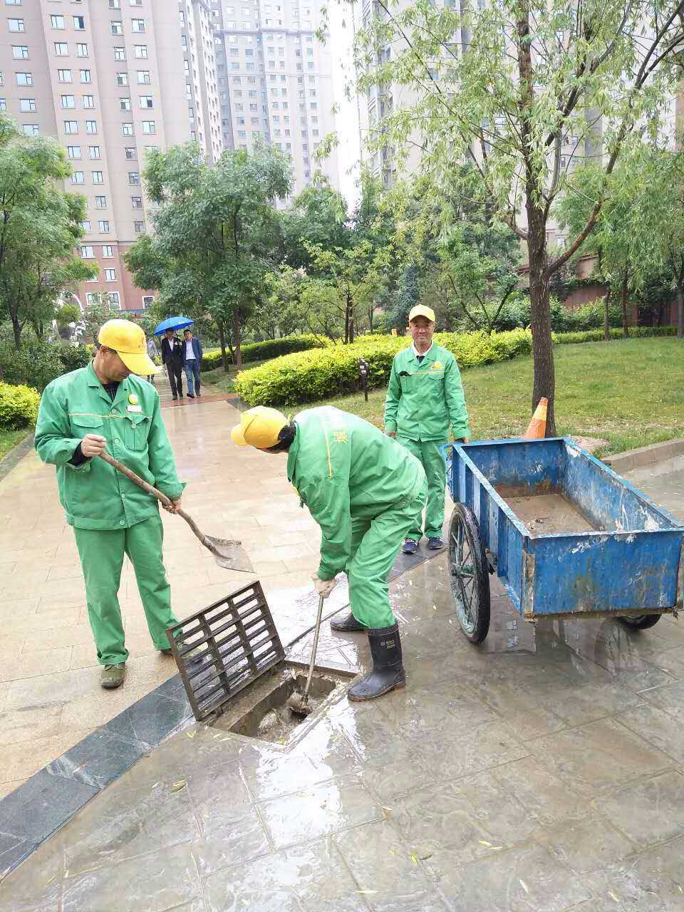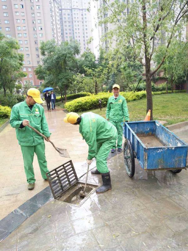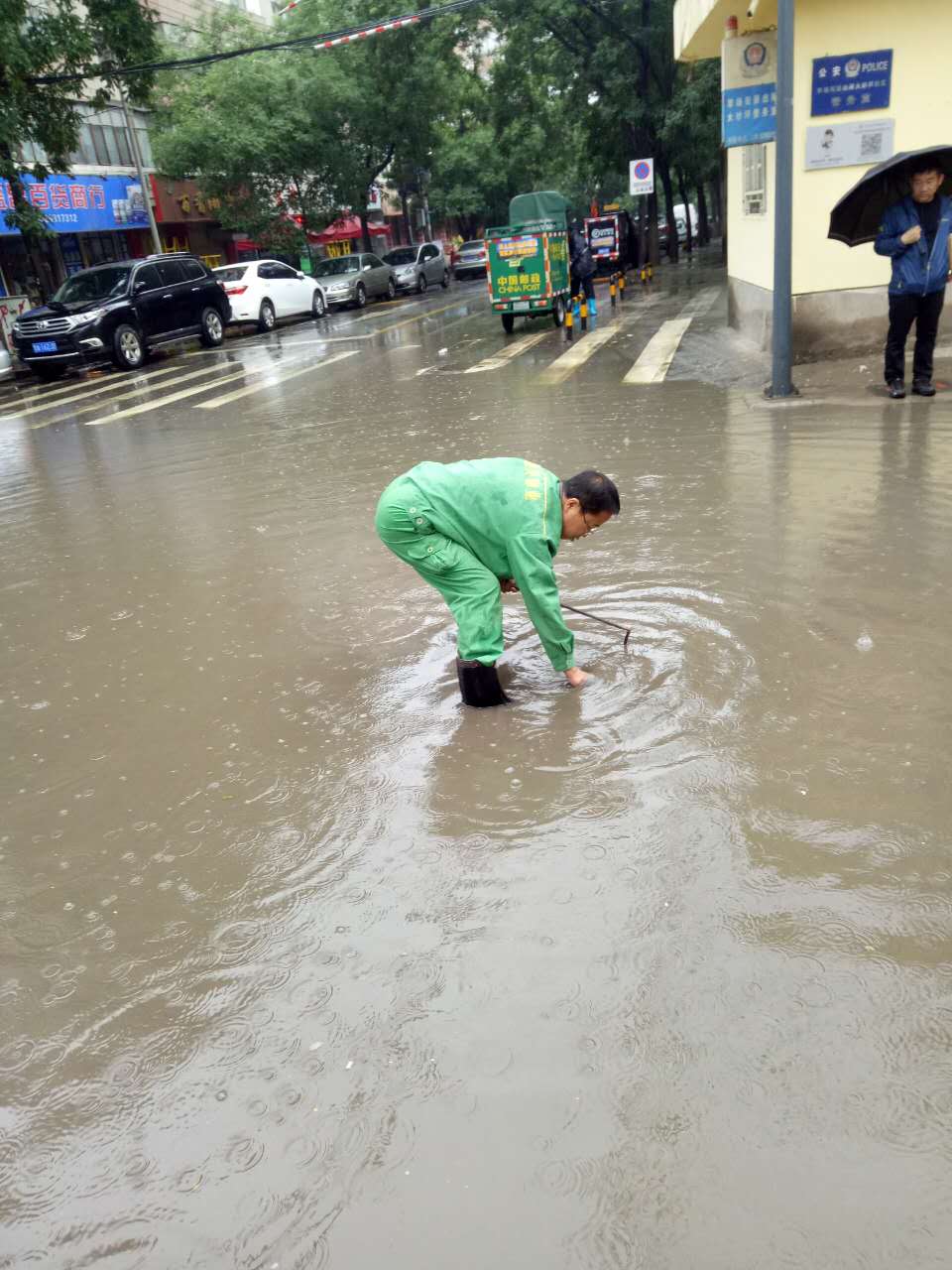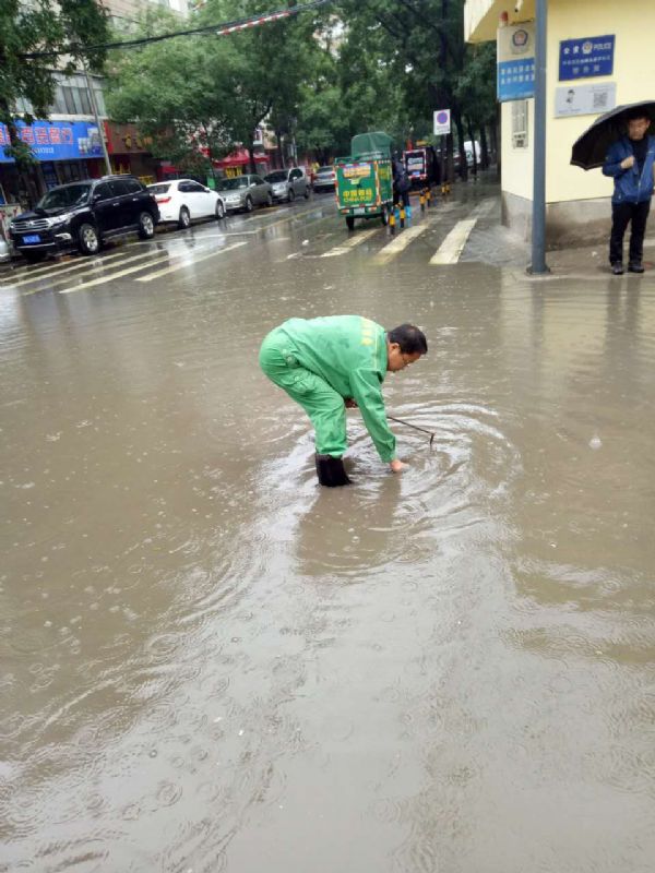 暴雨來襲,城關(guān)物業(yè)每位員工都堅守在抗擊暴雨的第一線。保安們在風(fēng)雨中麻利的扛起一袋袋防汛沙袋壘在車庫、地下室等低洼地區(qū)的入口,以防雨水倒灌。保潔員們用清潔工具不停地將室內(nèi)積水往外排,為了保證順利排水,在暴雨中查看下水道口,不顧水浸濕褲管和衣袖,直接將手伸進下水道口,把灌入的雜物清出。為了更迅速的排水,他們沒有打傘,兩手握著棍子奮力的疏通下水道。技術(shù)維修部的同事們時刻查看設(shè)備是否進水,是否正常運行。雖然是在室內(nèi),可是他們也已經(jīng)渾身大汗,即使是這樣,也一刻不放松。據(jù)第一事業(yè)部王總介紹,此次暴雨雖說突然,但是對于各項目來說卻一點也不突然,因為自4月份開始,各項目部就已經(jīng)成立了應(yīng)急小組,儲備了防汛物資,如沙袋、手電等,再加上日常的演練,每個人都已經(jīng)對自己的工作輕車熟路了,在這這樣的前提下安排工作省時又高效。因此,此次的防洪抗暴工作才能在最短的時間內(nèi)達到最好的效果。