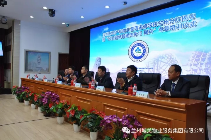 11月9日,深圳房地產(chǎn)和物業(yè)管理進(jìn)修學(xué)院蘭州分院揭牌暨“項(xiàng)目現(xiàn)場(chǎng)管理優(yōu)化與提升”專題培訓(xùn)儀式在蘭州新聞出版大廈七樓多功能廳舉辦。蘭州市人力資源和社會(huì)保障局、蘭州市住房保障和房產(chǎn)管理局、蘭州市商務(wù)局等單位的領(lǐng)導(dǎo)及深圳房地產(chǎn)和物業(yè)管理進(jìn)修學(xué)院院長(zhǎng)劉業(yè)全、蘭州城關(guān)物業(yè)服務(wù)集團(tuán)有限公司董事長(zhǎng)楊民召、甘肅新華飛天物業(yè)管理有限公司總經(jīng)理張建國(guó)等相關(guān)企業(yè)代表300余人出席了揭牌儀式。