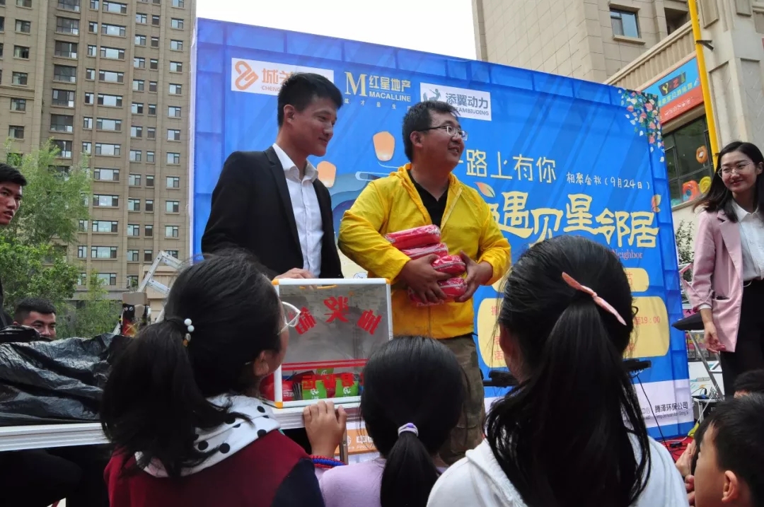 伴隨著現(xiàn)場(chǎng)一首好聽(tīng)的歌曲,活動(dòng)進(jìn)入尾聲,也迎來(lái)了讓小朋友歡呼雀躍的抽獎(jiǎng)環(huán)節(jié),紅星紫郡項(xiàng)目部經(jīng)理郭永杰為大家頒獎(jiǎng),F(xiàn)場(chǎng)一位小朋友的媽媽高興的說(shuō):“獎(jiǎng)品大小無(wú)所謂,重要的事讓孩子參與了活動(dòng),感受到了無(wú)比的快樂(lè)”。另外還給每位小朋友贈(zèng)送了熒光棒,中秋佳節(jié),孩子們會(huì)用它來(lái)點(diǎn)亮黑夜,歡度節(jié)日!