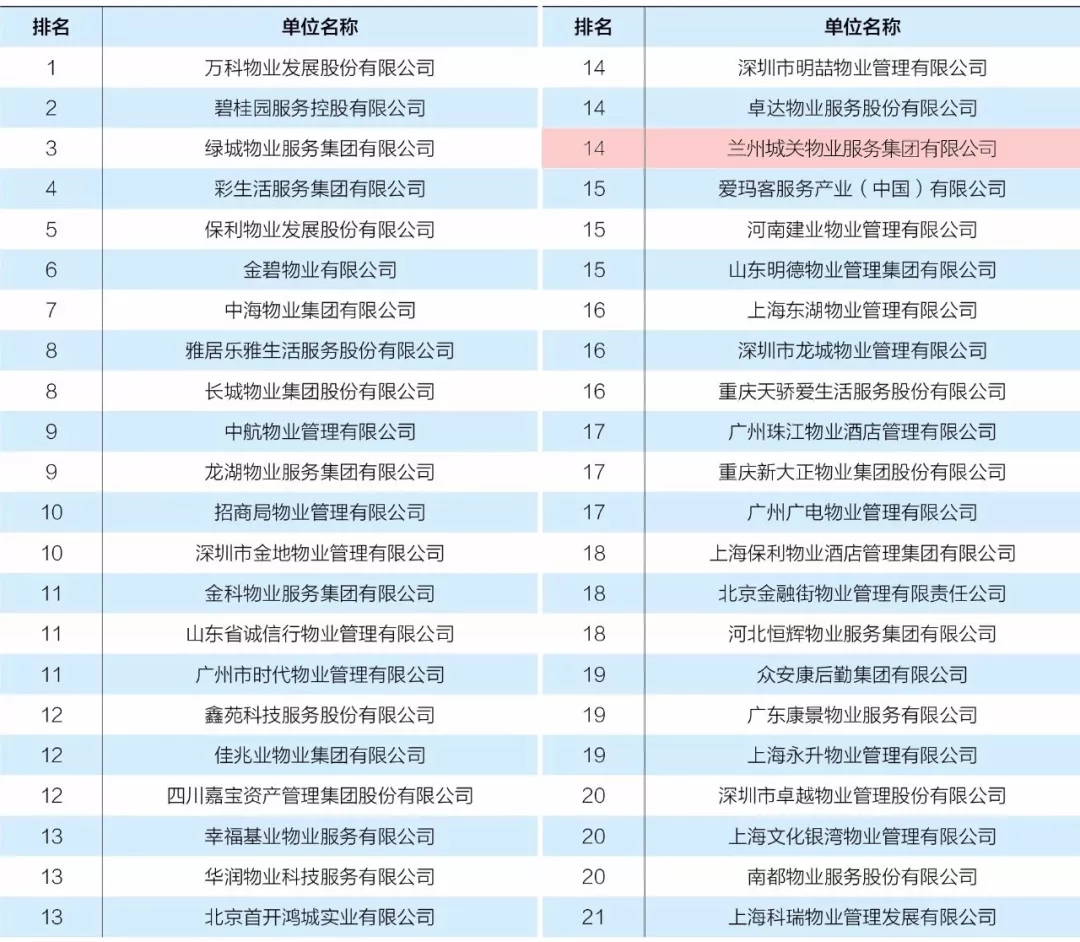中國物業(yè)服務(wù)企業(yè)綜合實(shí)力TOP100(前21名)