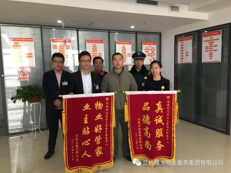 近日,金達(dá)商務(wù)大廈24樓業(yè)主將題有“真誠(chéng)服務(wù),品德高尚”、“物業(yè)好管家,業(yè)主貼心人”的兩面錦旗送至華峰利達(dá)物業(yè)公司,并對(duì)工作人員心系業(yè)主、認(rèn)真負(fù)責(zé)的工作態(tài)度表示了肯定和感謝。