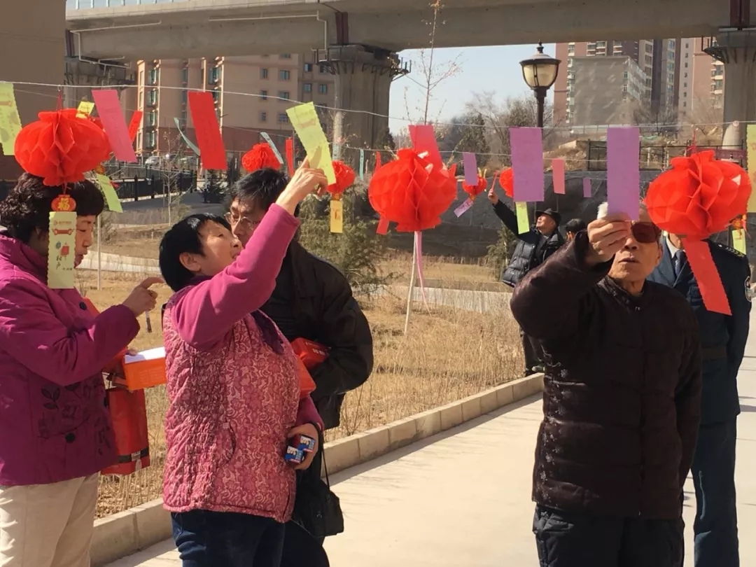 一張張精心制作的燈謎與火紅的燈籠交相輝映,數(shù)百條燈謎包羅萬(wàn)象,既具娛樂(lè)性,又具知識(shí)性。元宵節(jié)當(dāng)天下午,陸續(xù)有業(yè)主們帶著孩子前來(lái)活動(dòng)現(xiàn)場(chǎng)參加猜謎活動(dòng)。參與其中的業(yè)主們興趣盎然,你一言我一語(yǔ)互相討論,爭(zhēng)先恐后搶答燈謎。有的業(yè)主駐足在謎面前凝神沉思,有的業(yè)主致電家人朋友詢問(wèn)謎底,有的業(yè)主三五成群聚在一起討論,活動(dòng)現(xiàn)場(chǎng)氣氛熱烈。