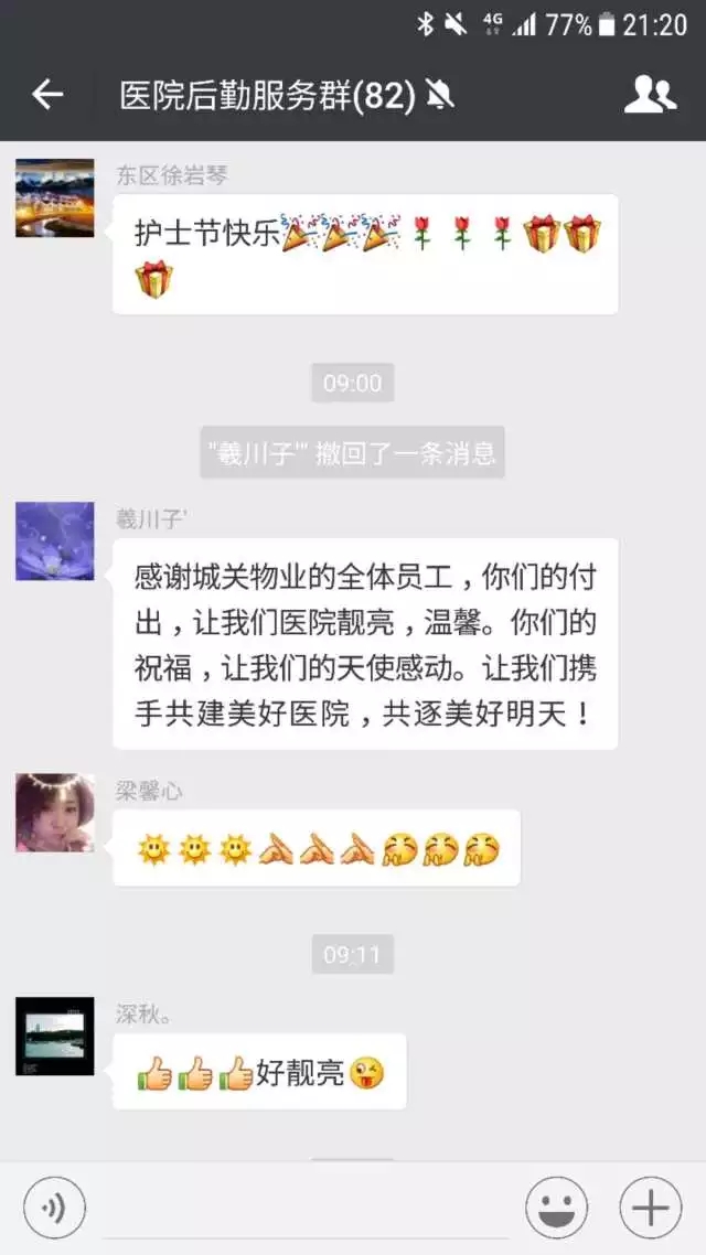 在“5·12”國(guó)際護(hù)士節(jié)來(lái)臨之際,蘭州城關(guān)物業(yè)服務(wù)集團(tuán)組織舉辦了相關(guān)慰問(wèn)活動(dòng),分別向蘭大一院、蘭大二院、三愛(ài)堂醫(yī)院、陸軍總院、肺科醫(yī)院、蘭石醫(yī)院、蘭化醫(yī)院各科室護(hù)士贈(zèng)送了禮品,為這些始終堅(jiān)守一線的白衣天使送去節(jié)日的祝福,此舉獲得了院方領(lǐng)導(dǎo)的一致好評(píng)及贊譽(yù)。