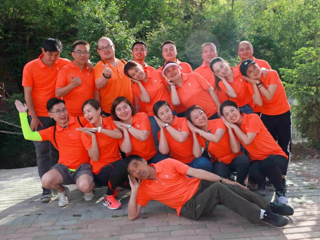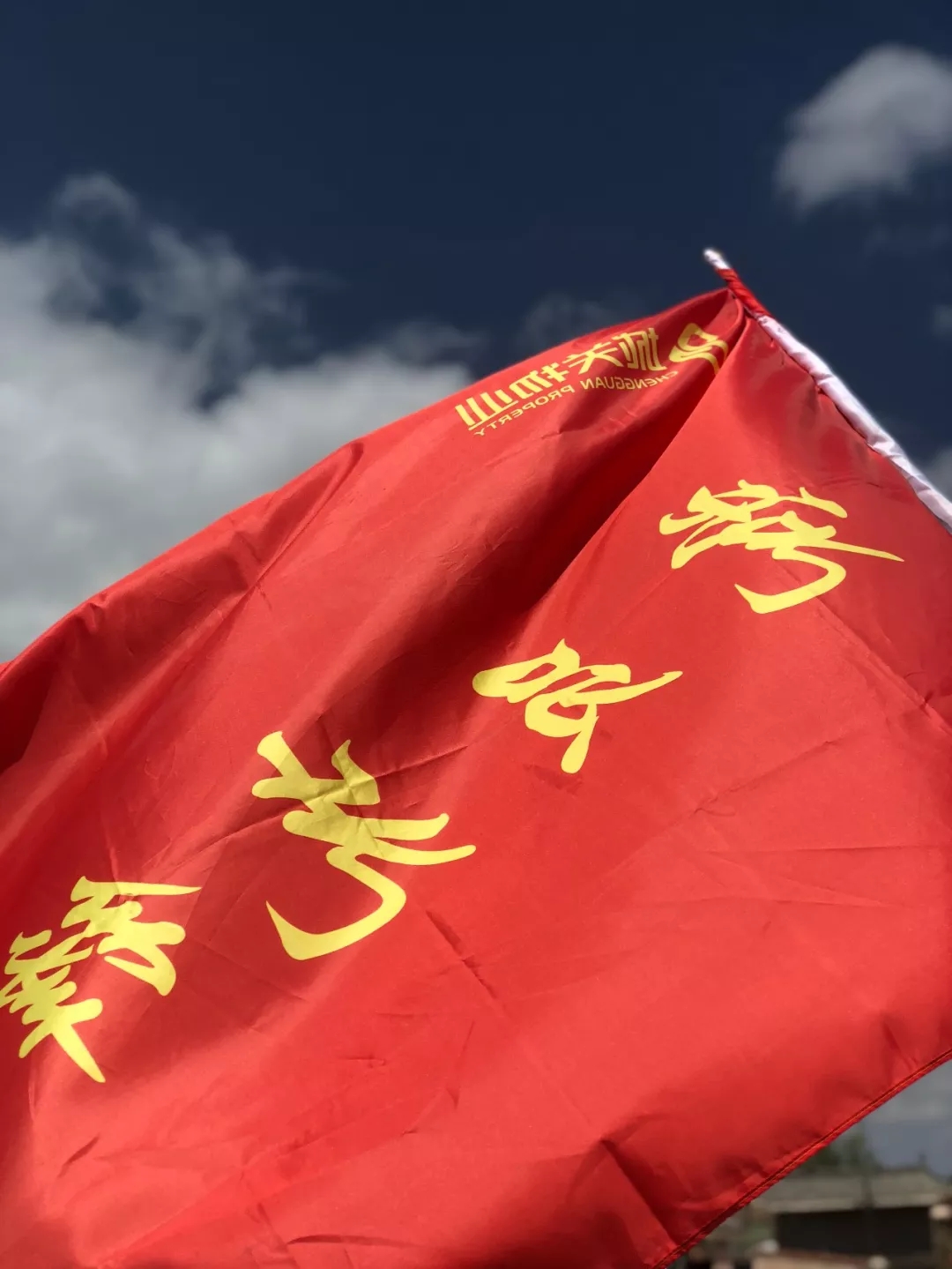 大家身著代表著企業(yè)的橙色上衣,肩扛代表各隊(duì)的旗幟,