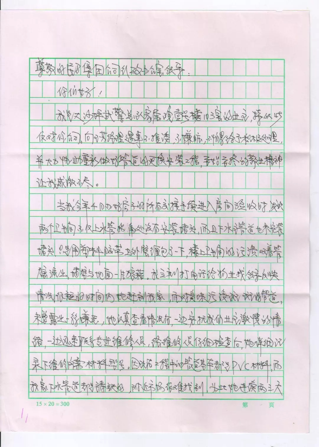 在為錢先生解決下水管道滲漏問題及安裝更換的過程中,向玉芳經(jīng)理沒有一絲推諉,沒有一句抱怨,不嫌臟亂、認真負責(zé)的工作態(tài)度得到了業(yè)主的肯定和贊譽。業(yè)主錢先生特意寫來感謝信,以此來表達對向玉芳經(jīng)理的感激之情,及對城關(guān)物業(yè)服務(wù)工作的肯定和贊揚。