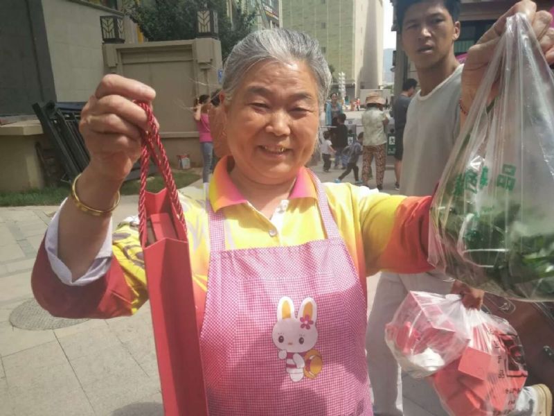 老奶奶系著圍裙,體驗(yàn)著比賽樂(lè)趣。