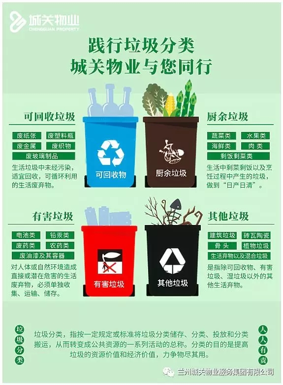 為有效推進城關物業(yè)所轄小區(qū)垃圾分類工作的有序開展,先后在各小區(qū)購置新型四色分類垃圾桶(包括可回收物、易腐垃圾、有害垃圾和其他垃圾),配備垃圾棚,集中打造生活垃圾分類投放點,方便業(yè)主更好地分類投放。