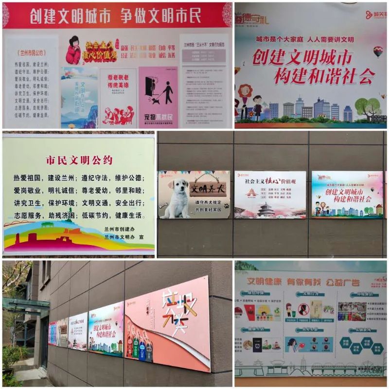 城關(guān)物業(yè)在創(chuàng)文期間加大工作力度,保證環(huán)境整潔,同時(shí)積極開展“精神文明”建設(shè)工作,在小區(qū)內(nèi)各顯著位置張貼創(chuàng)文宣傳海報(bào)、宣傳展板,專門設(shè)立“蘭州市文明志愿者”崗,為業(yè)主宣傳創(chuàng)文工作。
