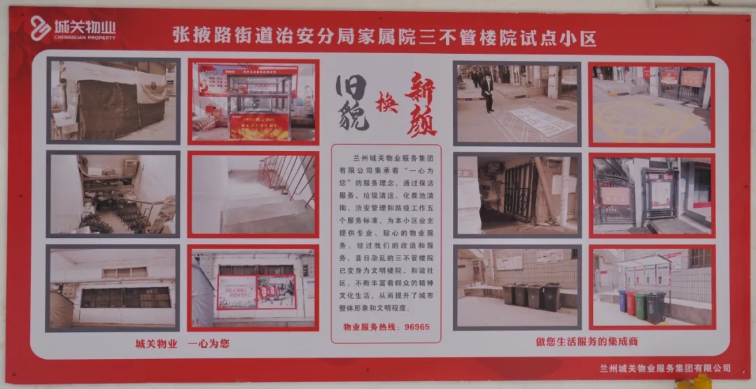 蘭州城關(guān)物業(yè)全面接管城關(guān)區(qū)老舊樓院后,采取先期介入、分層改造等新模式,啟動實(shí)施“三不管”樓院物業(yè)全覆蓋整治工作,通過環(huán)境衛(wèi)生改造,基礎(chǔ)設(shè)施維修,安全秩序維護(hù)等方面工作,把‘三不管’樓院變成‘三要管’。我們將繼續(xù)努力,持續(xù)推進(jìn)城關(guān)區(qū)老舊樓院改造,不斷引入多元化服務(wù),全面提升服務(wù)質(zhì)量,提升業(yè)主的幸福感和滿意度!