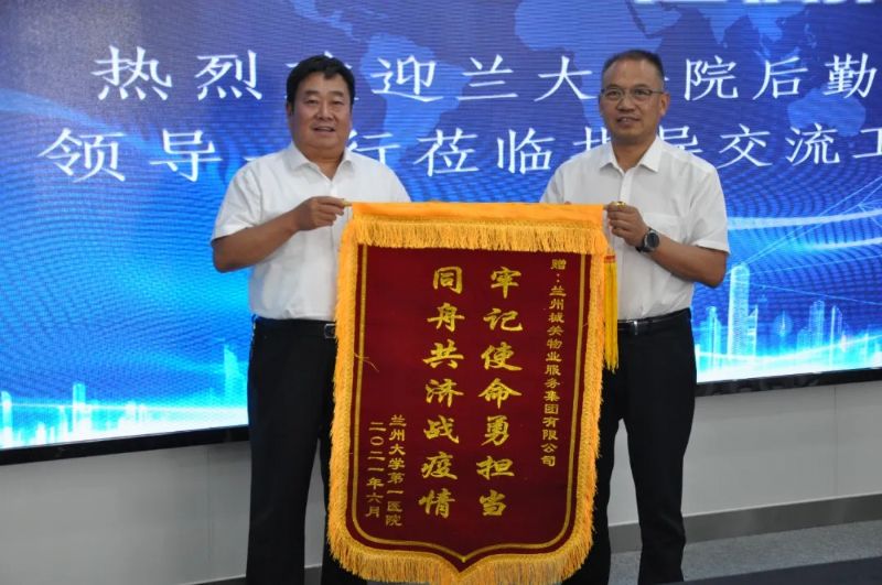 蘭州大學第一醫(yī)院后勤保障處陳處長一行人專程來到蘭州城關(guān)物業(yè)服務(wù)集團有限公司,將一面寫有“牢記使命勇?lián)?nbsp;同舟共濟戰(zhàn)疫情”的錦旗贈予蘭州城關(guān)物業(yè)服務(wù)集團有限公司,以此表達對城關(guān)物業(yè)的感謝和認可。