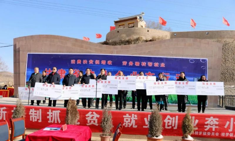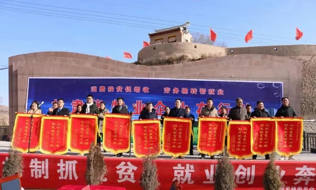 下午,“消費扶貧促增收,勞務(wù)輸出幫就業(yè)”公益活動在榜羅鎮(zhèn)會議紀(jì)念館廣場正式開啟。