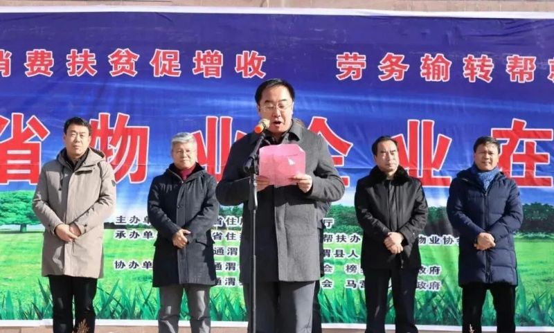 甘肅省物業(yè)管理行業(yè)協(xié)會會長、蘭州城關(guān)物業(yè)服務(wù)集團有限公司董事長楊民召同志致辭。他表示,“甘肅省物業(yè)企業(yè)踐行社會責(zé)任,助力脫貧攻堅,希望能在這關(guān)鍵的時刻帶領(lǐng)咱們物業(yè)行業(yè)為甘肅省脫貧攻堅任務(wù)貢獻一份力量。協(xié)會將繼續(xù)號召全省各地方物業(yè)管理行業(yè)協(xié)會和物業(yè)服務(wù)企業(yè)積極參與扶貧工作。以堅定不移的信念和毫不動搖的決心,動員全行業(yè)企業(yè)參與到這場攻堅戰(zhàn)中,把好事辦好,把實事辦實,為打贏脫貧攻堅戰(zhàn)貢獻行業(yè)力量!