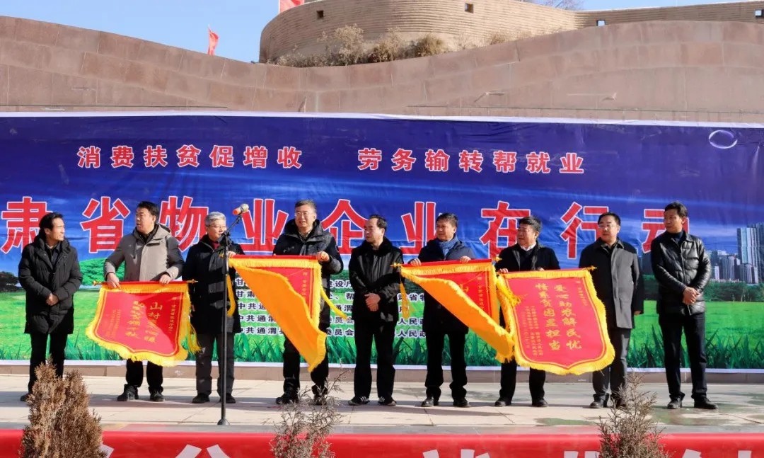 為大力開展消費扶貧,助力脫貧攻堅和推進鄉(xiāng)村振興,在省住建廳房地產(chǎn)監(jiān)管處和廳幫扶辦引導(dǎo)和支持下,由甘肅省物業(yè)管理行業(yè)協(xié)會牽頭,蘭州城關(guān)物業(yè)服務(wù)集團有限公司與20余家物業(yè)公司一起,赴甘肅省通渭縣榜羅鎮(zhèn),開展以“消費扶貧促增收、勞務(wù)輸轉(zhuǎn)幫就業(yè)、物業(yè)企業(yè)在行動”為主題的公益活動,并與榜羅鎮(zhèn)、馬營鎮(zhèn)政府簽訂了消費扶貧推廣協(xié)議書。