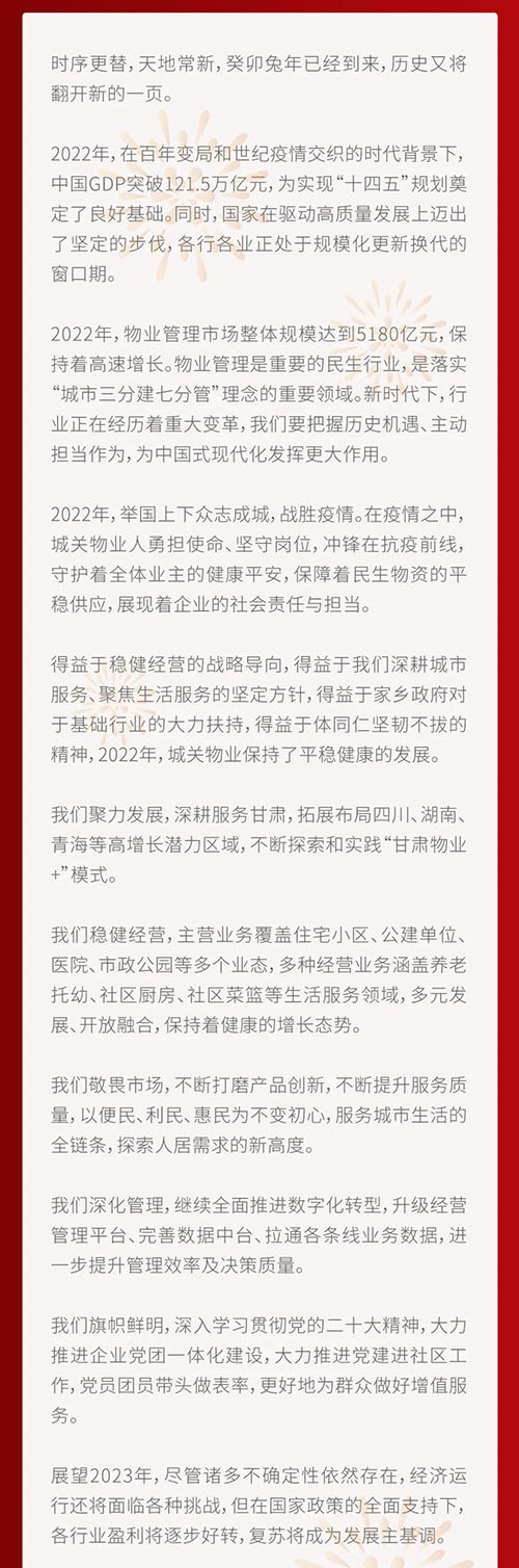Copyrights © All Rights Reserved 版權(quán)所有 蘭州城關(guān)物業(yè)服務(wù)集團(tuán)有限公司 備案號:隴ICP備10200329號 設(shè)計制作:宏點網(wǎng)絡(luò)